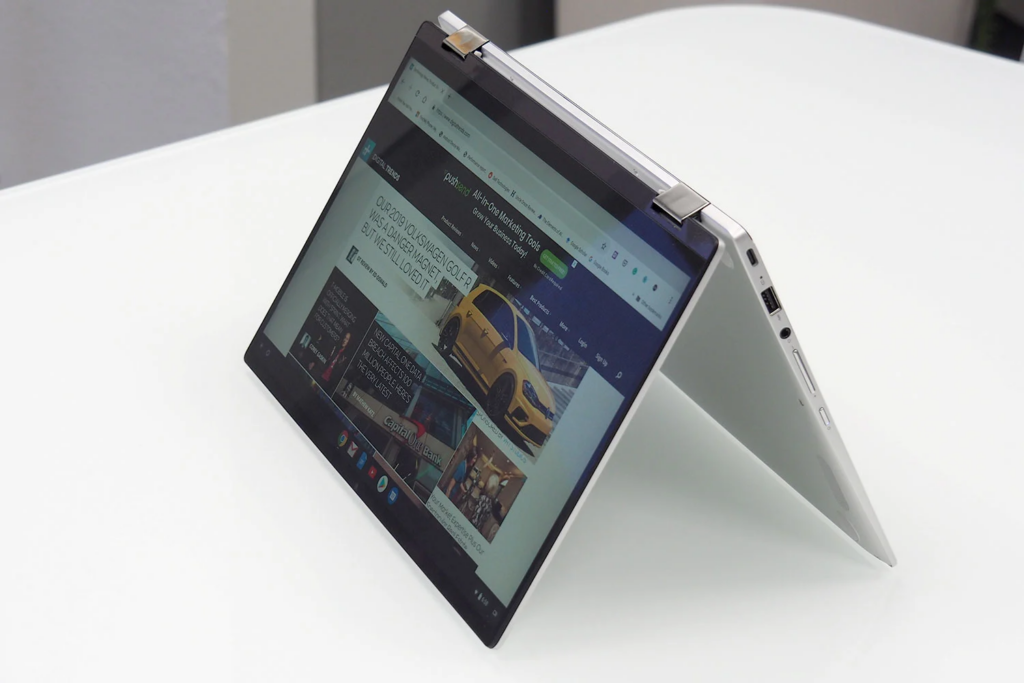 Графика представлена Intel UHD Graphics. Оперативная память на выбор 8 или 16 GB плюс хранилище на 128 / 256GB. Ноутбук работает на операционной системе Google. Снабжен с левой стороны портами USB-C и USB-A, а также microSD и разъемом для гарнитуры. Справа установлен второй порт USB-C, кнопка питания, тумблер громкости и порт HDMI. Аккумулятор мощностью 48 кВт.ч рассчитан на 10 часов работы. Это недорогая модель, средняя стоимость которой 270 долларов.